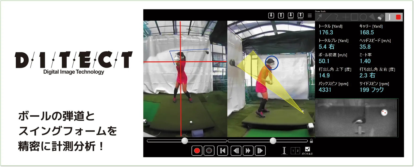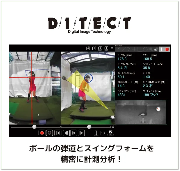DITECT ボールの弾道とスイングフォームを精密に計測分析!